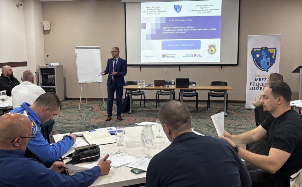 Dane 15. i 16.04.2026. godine, u organizaciji Udruženja “Mreža policijskih službenica”, u Konjicu je održana obuka za policijske službenike/ce na temu "Istraživanje i dokazivanje slučajeva seksualnog nasilja povezanog sa sukobima", kojoj je prisustvovalo 20 istražitelja/ica iz cijele Bosne i Hercegovine.